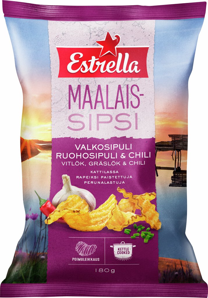 Estrella Maalaissipsi valkosipuli, ruohosipuli & chili
